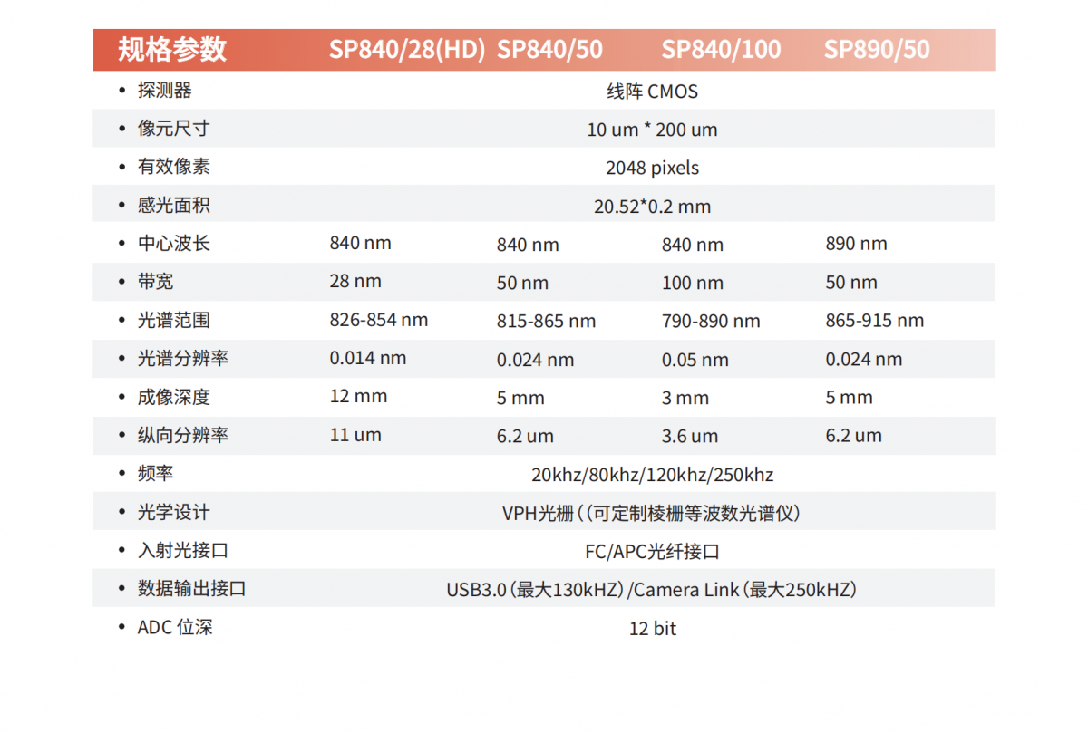 国产自研OCT光谱仪 产品介绍 SP840-28(HD) SP840-50 SP840-100 SP890-50 影像生成 猪骨影像 透明胶带 OCT光谱仪技术参数 如果你想了解更多信息请点击下方按钮“了解更多” 了解更多